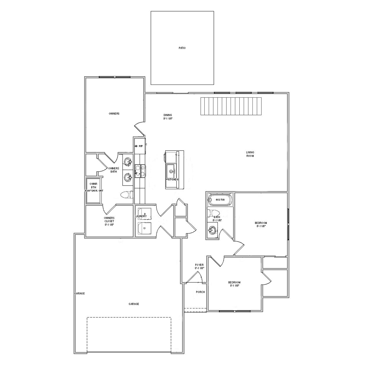 The Cypress floor plan features 1,370 sq ft of finished living space with 3 bedrooms and 2 full bathrooms.